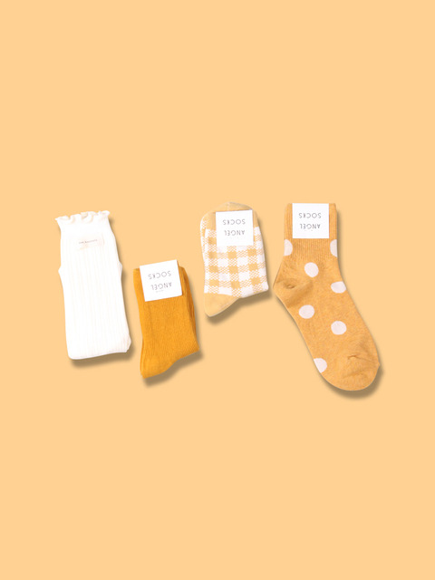 [엔젤삭스] SET003_바나나우유 노란 노랑 봄 학생 교복 여자 패션 땡땡이 선물세트 양말선물 작은선물 생일선물