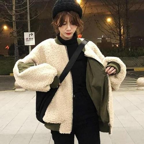 [셀러허브_여성트랜드패션]투웨이 지퍼 블루종 뽀글이 점퍼 양면 오버핏