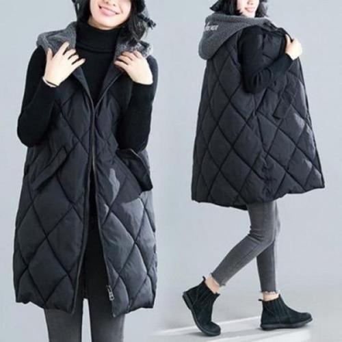 여자조끼 루즈 윈터 롱패딩조끼 양털후드 따뜻 누빔조끼