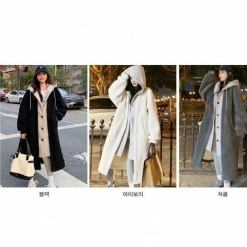 [셀러허브_여성트랜드패션]여자 후드점퍼 뽀글이 아우터 겨울 롱코트 3컬러 인조양털