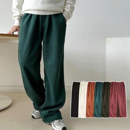 무니유유 여성 겨울 양털 빅사이즈 와이드 기모 밴딩팬츠
