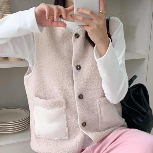 [신상오픈런]여성 양털 포켓 겨울 단추 조끼 (42520038)