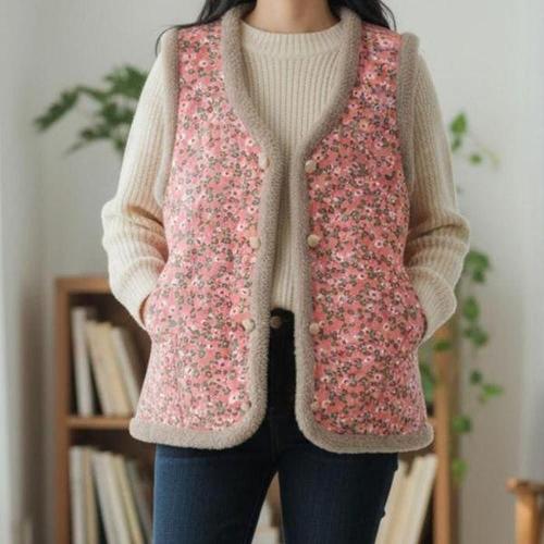 누빔털조끼 김장조끼 촌캉스 할머니 퀼팅 보온 양털 꽃무늬 레트로 방한 효도선물 패션 따스한 열 할매