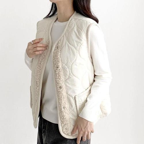 [신상오픈런]여자 뽀글이 물결 퀼팅 포켓 베이직핏 겨울 양털 조끼 (42357288)