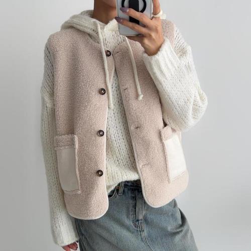 [신상오픈런]여성 양털 조끼 배색 스웨이드 포켓 단추 겨울용 뽀글이 (42510233)
