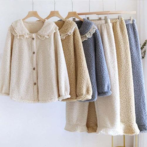 귀여운홈웨어 여성 귀여운 뽀글이 양털 수면잠옷 세트