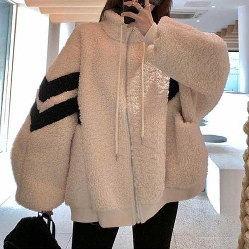 [에이치플러스몰]오버핏 가오리 양털 후리스 집업 뽀글이 겨울 데일리
