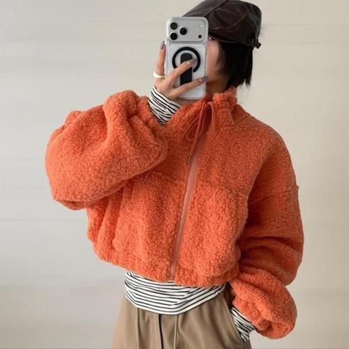 [신상오픈런]여성용 일상 양털 텍스처 하이넥 크롭 집업 재킷 (44092039)