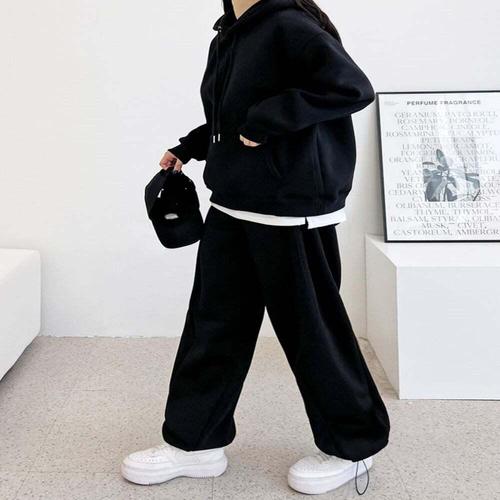 [옷자락]여자 양털 기모 맨투맨 와이드 팬츠 트레이닝 세트