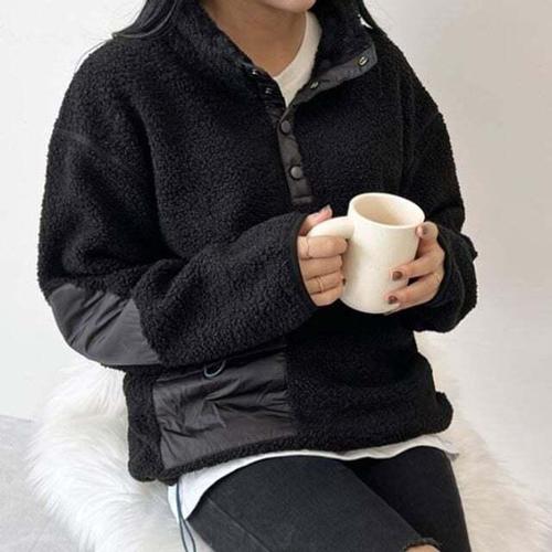 여성 오버핏 두줄 배색 뽀글이 집업 양털 점퍼 시보리 epW2+5cbz