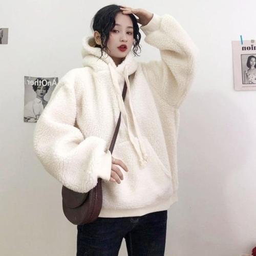 [엄지척]여자 티셔츠 양털 후드 뽀글이 루즈핏 겨울 후드티_19646115_667501