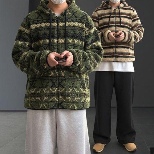 남녀공용 융털 양털 뽀글이 후드집업 루즈핏 후드티 자켓 후리스 빅사이즈