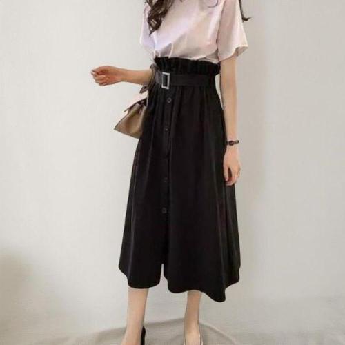 [신상오픈런]여성 기본 반팔 티셔츠 벨트 A라인 스커트 세트