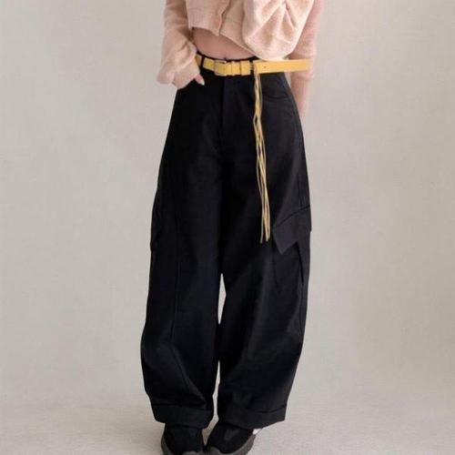 [신상오픈런]여성 캐주얼 배기핏 롤업 포켓 벨트 카고 바지