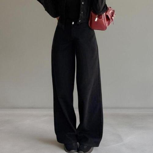[신상오픈런]여성용 컬러 면바지 와이드핏 백라인 벨트 캐주얼 팬츠