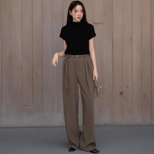 [신상오픈런]여성용 핀턱 벨트 세트 와이드 롱 슬랙스 오피스 스타일