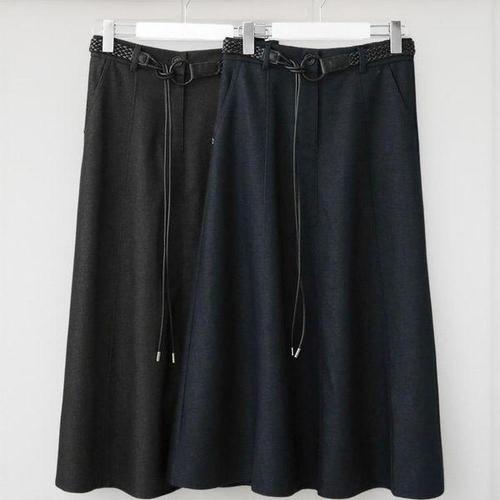 [신상오픈런]여성 롱 스커트 클래식 벨트 A라인 단색 랩 스타일