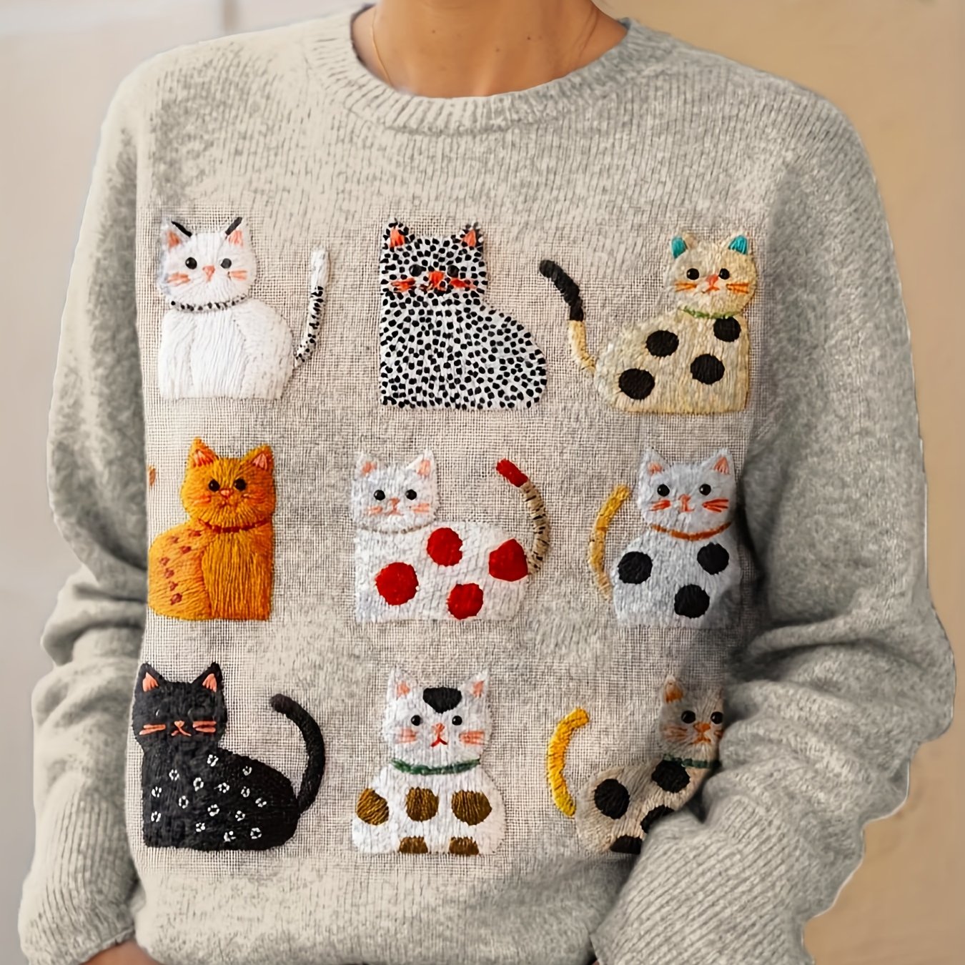 TEMU 여성용 양무늬 겨울 코지 스웨터 - 라운드넥 긴팔 풀오버 블라우스, 캐주얼 가을 겨울 레이어링 상의, 드레스나 청바지에 어울리는 핸드워시 가능한 논스트레치 스웨터