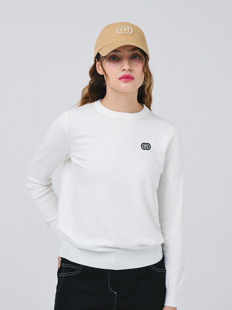 [두유노우엠씨] 25FW 소프트 텃치 솔리드 라운드 넥 퓨어 웜 화이트 긴팔 니트