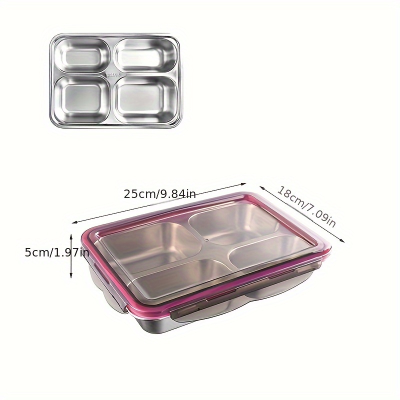 TEMU 스테인리스 스틸 4칸 보온 도시락 상자 - 누수 방지, 학생 및 성인용 휴대용 벤토 박스, 학교, 급식실, 배낭에 완벽함