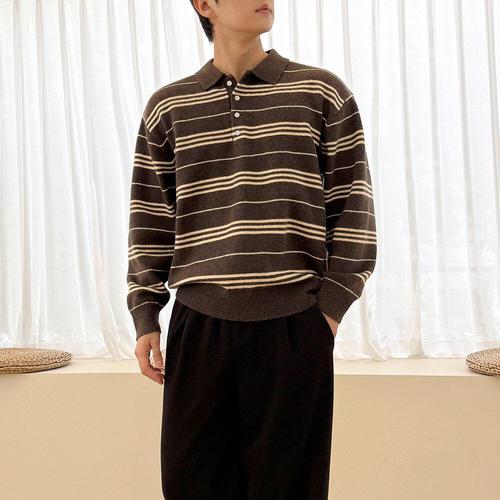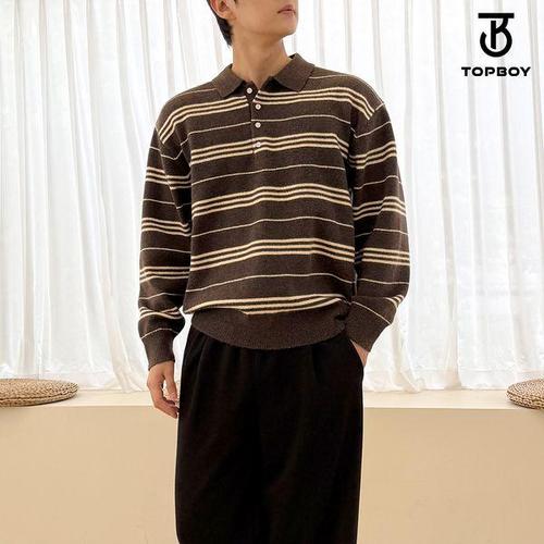[탑보이][탑보이] 어반 단가라 니트 카라 긴팔 티셔츠 (WI012)