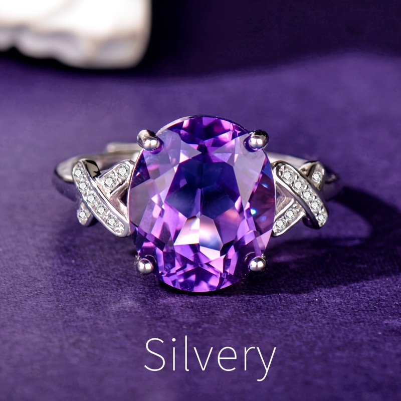 TEMU 925 스털링 실버 천연 자수정 반지 로즈 골드 - 조절 가능한 우아하고 고급스러운 밴드, 여성을 위한 패션 주얼리, 그녀를 위한 완벽한 선물 - 발렌타인데이, 어머니날, 생일, 크리스마스