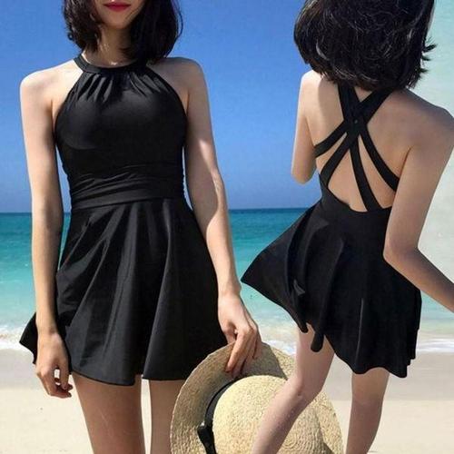 [에이치플러스몰]여자 원피스수영복 예쁜 비치 체형커버수영복 스윔웨어 투라인 백 크로스 몸매보정 치마