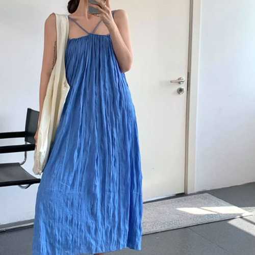 슈팅스타 / 빠른출고 캐주얼 A라인 해변 비치룩 여행룩 롱 끈나시 원피스