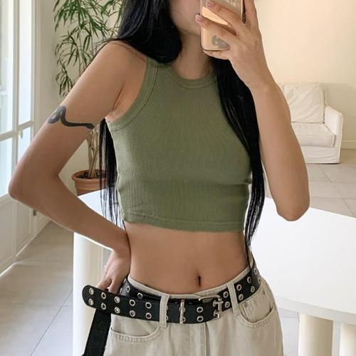 [신상오픈런]홀터민소매 배꼽티 스트릿 언더붑 골지나시 순면티 (30848330)
