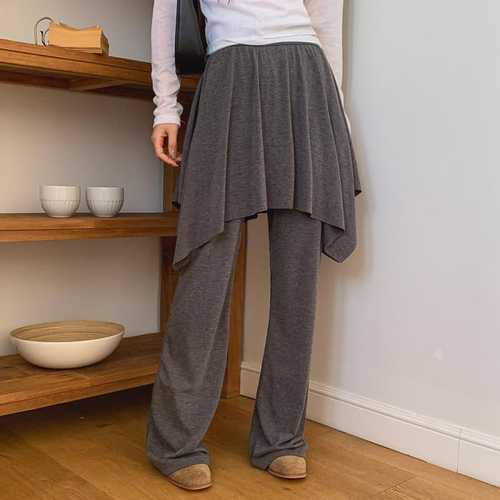 옷자락 / 여자 언발란스 미디 플레어 밴딩 와이드핏 데일리룩