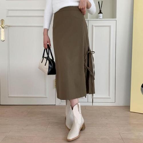 YioYcc 밴딩 A라인 언밸런스 치맛자락 루즈핏 롱스커트