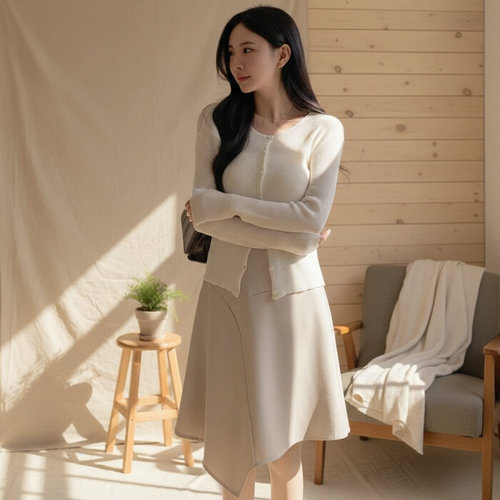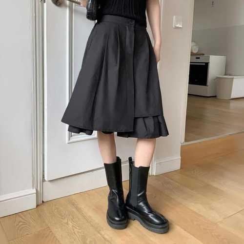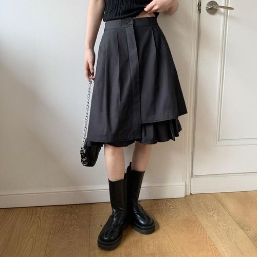 옷자락 / 여자 언발 플리츠 레이어드 사선 간절기 봄 롱스커트