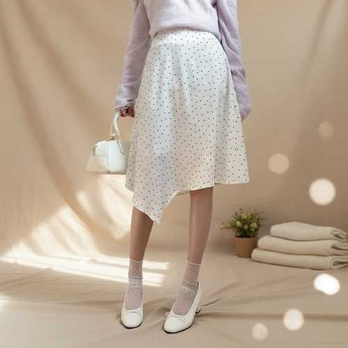 옷자락 / 여성 페미닌 스타일 언발란스 도트 미디 스커트