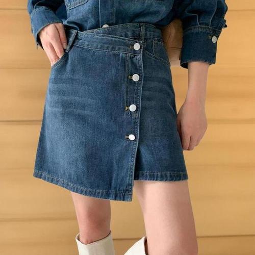 듀엘 언발란스 데님 스커트 (D251MSD012)