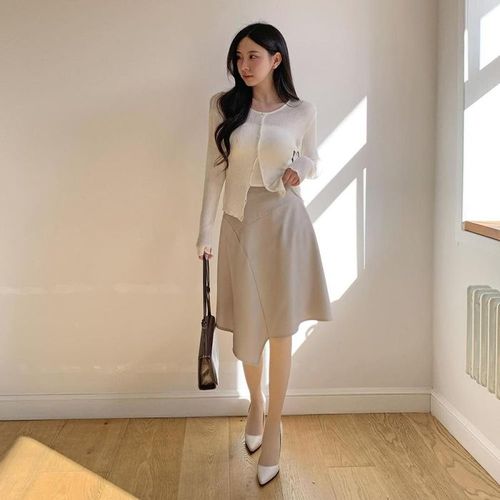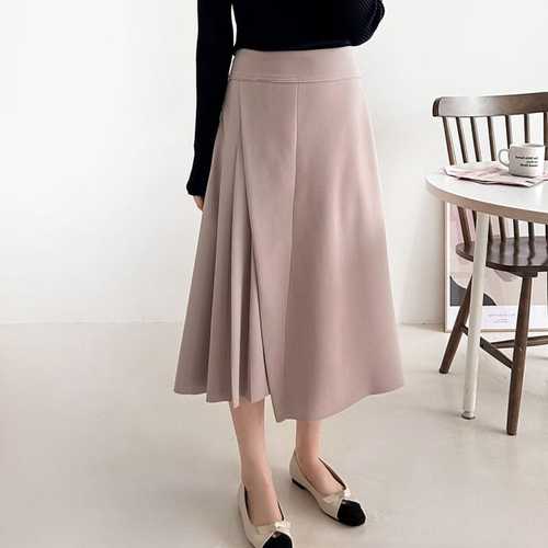 옷자락 / 여자 오피스룩 하객룩 언발 플리츠 스커트