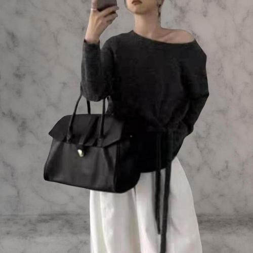 [다잇템]여성 언발란스 볼드숄더 롱슬리브 트임 티셔츠