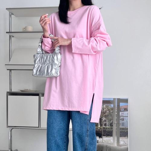 여자 롱슬리브 큰사이즈 트임 언발 티셔츠