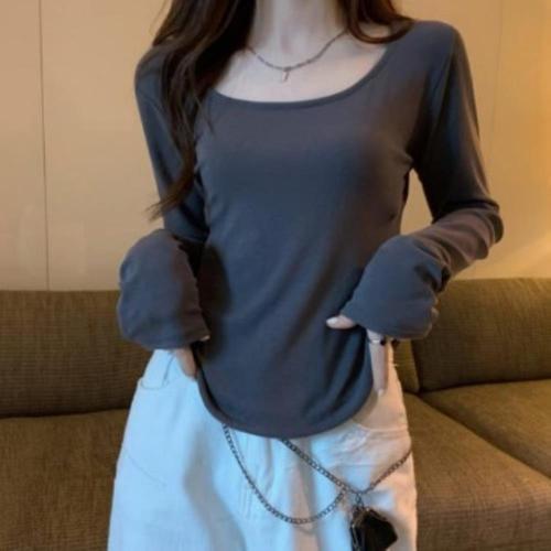 여성 언발란스 스퀘어넥 슬림 롱슬리브 티셔츠