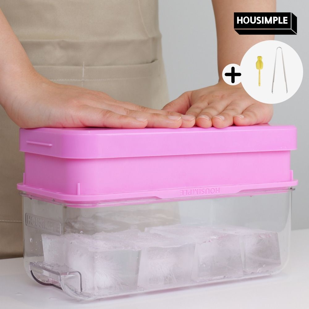 [리퍼]시즌3 실리콘 푸쉬 얼음트레이 하이볼 얼음틀 2단 왕 얼음 보관통+집게+세척솔 세트