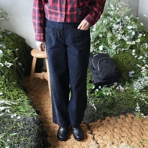 [쉬즈마담]P92017 둥근패치포켓 기모밴딩 청통바지 엄마바지