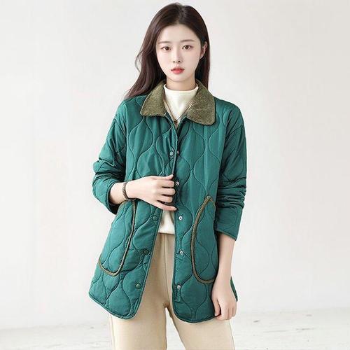 [헬리꽁땡](55~88)배색카라골덴퀼팅점퍼 체크자켓 카라점퍼 반코트 간절기여성점퍼 40대 50대 엄마옷