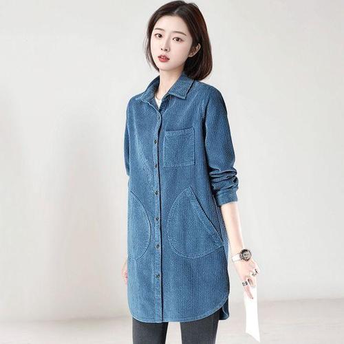 [헬리꽁땡](55~88)빅포켓골덴셔츠점퍼 체크자켓 카라점퍼 반코트 간절기여성점퍼 40대 50대 엄마옷