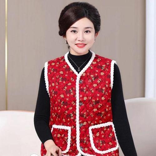 여성 겨울 털 누빔조끼 털바지 꽃무늬 방한 보온 엄마옷 할머니옷 촌캉스 김장조끼 레트로