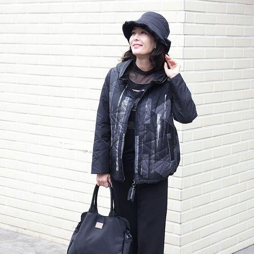 [쉬즈마담]J31734 디지털나염 자수 반후드 패딩자켓 50대 엄마옷