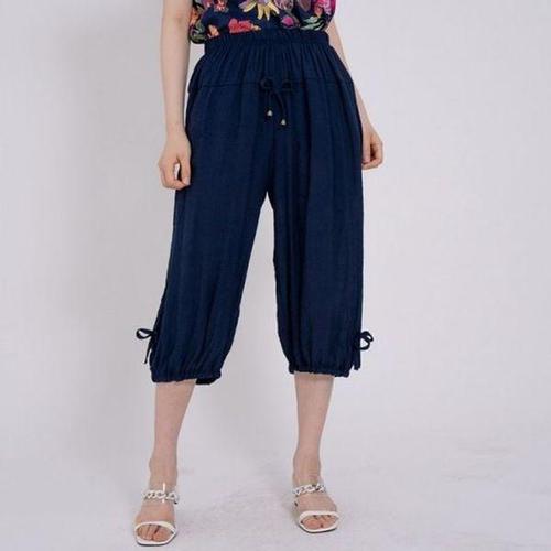 [애비뉴투지]엄마옷 린넨 혼방 레이스 리본 진주 장식 허리밴드 주머니 여성 여름 칠부 기본핏 바지 P075..