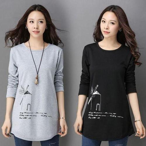 [에이치플러스몰]가을 봄 순면티 여성 긴팔티셔츠 대 엄마의류 순 면티 여성 로미홀리 긴팔 티셔츠 의류