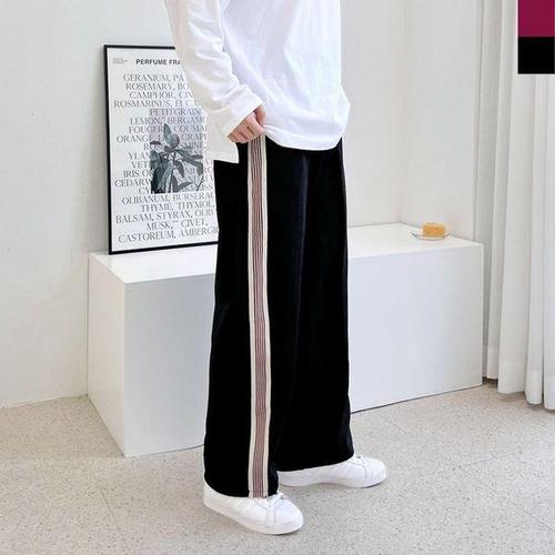 GTT G278M 남자 커플 트레이닝 테잎 트랙 와이드 팬츠 남자트레이닝팬츠 커플트레이닝복 트레이닝복세트 트레이닝바지 와이드팬츠 트랙팬츠 밑단스트링 스트링팬츠