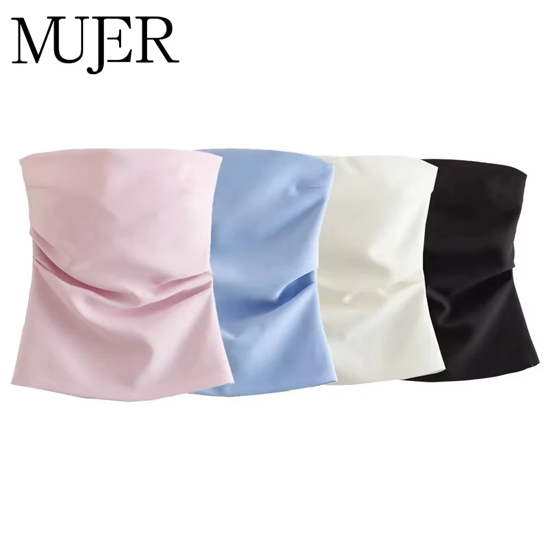 MUJER 오프숄더 크롭탑 여성 루슈 백리스 튜브탑 여성 여름 코르셋 탑 여성 섹시 탱크 캐미솔 탑 2025