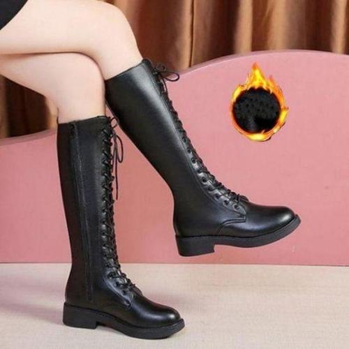 [셀러허브_여성트랜드패션]내피 시그니처 보아레이스업 스타일 캐주얼화 롱부츠 워커부츠