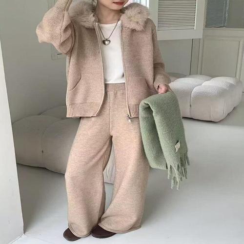 [하젤]멜로망스 퍼후드 가디건 팬츠 니트세트_W4374